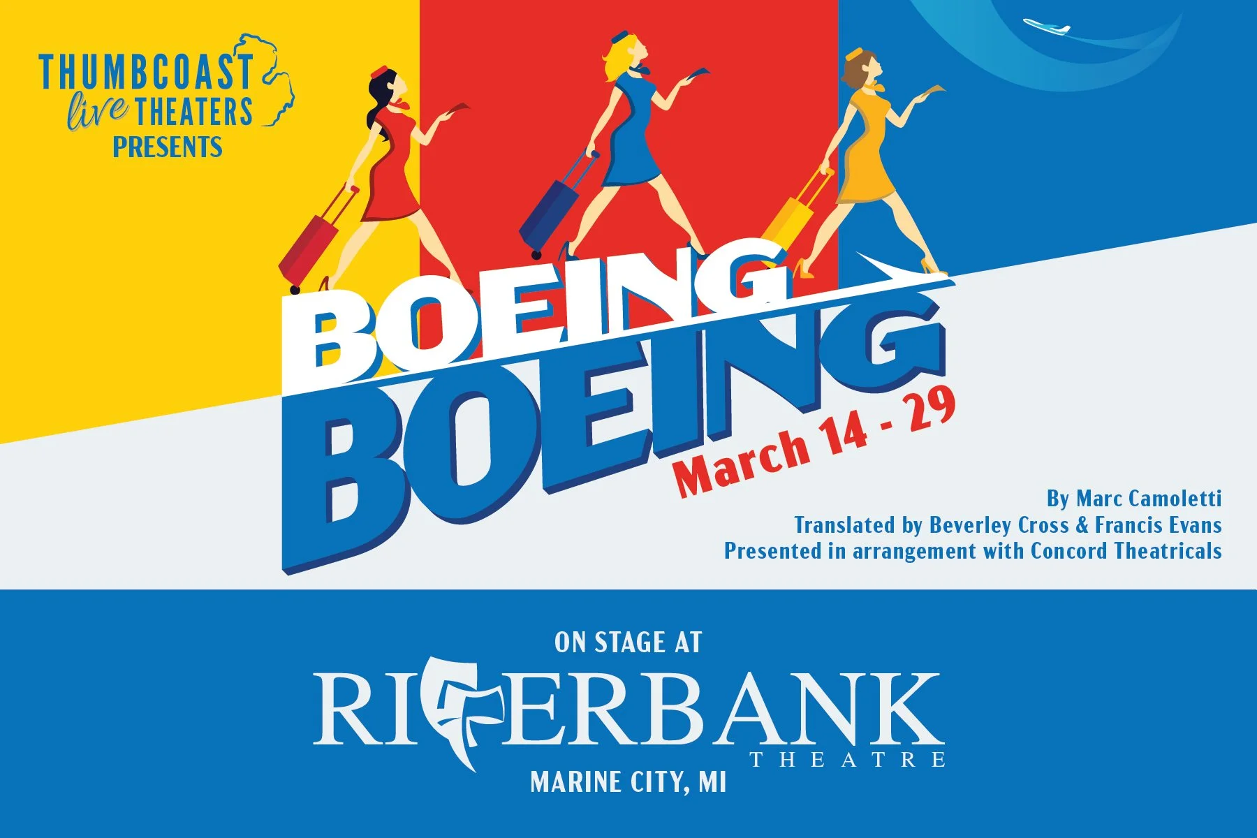 Boeing, Boeing, a high-flying farce set in the 1960s centers on one charming bachelor who finds himself juggling three fiancées - each a flight attendant on a different airline - until a surprise schedule change sends his perfectly planned life into hilarious turbulence. What could possibly go wrong?